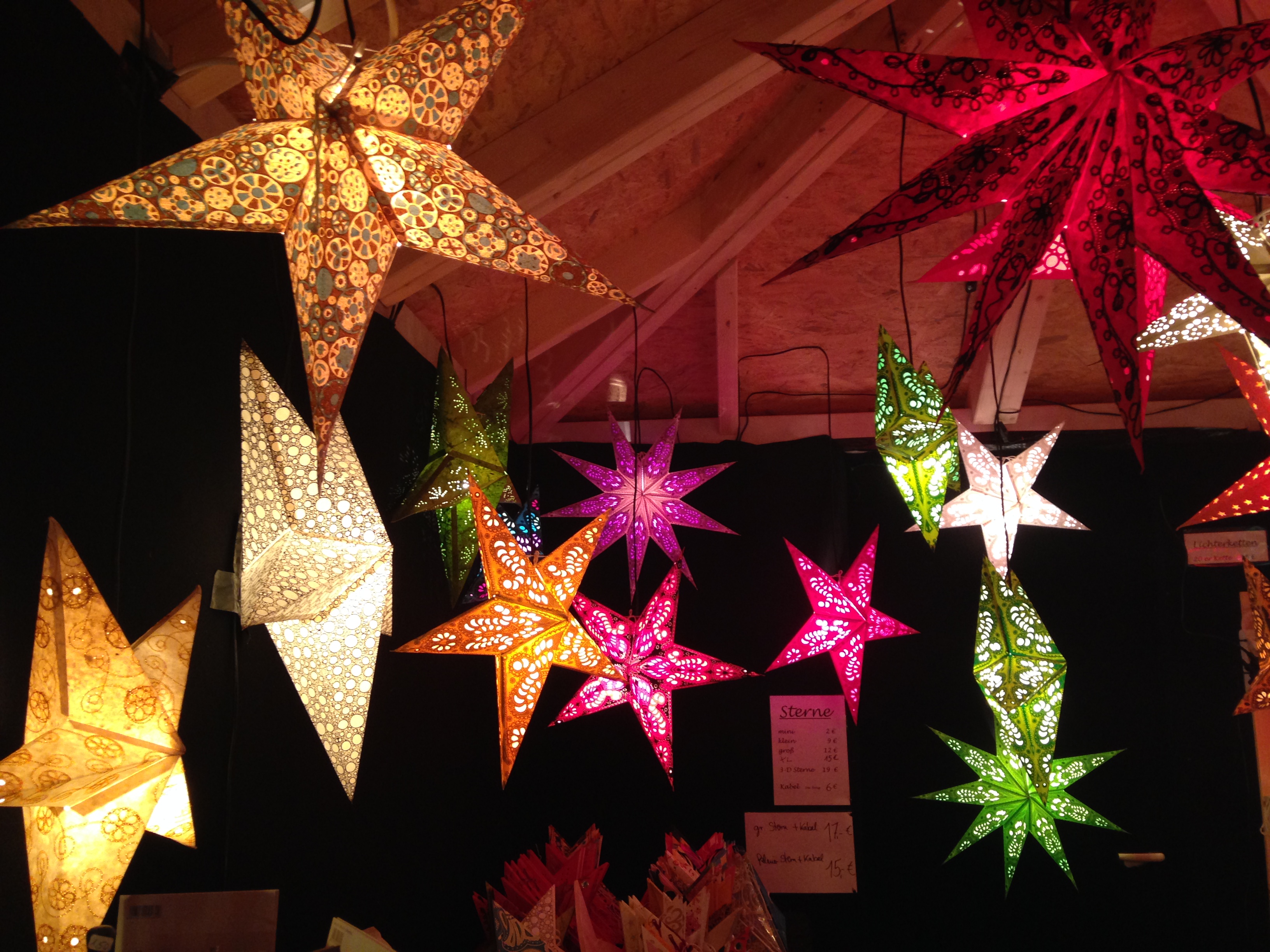 Sterne lösen meistens weihnachtliche Gefühle aus. Am Stand von „Heimat Berlin Papierwaren“ gab es Lichter in Form von Sternen in den verschiedensten Farben, die einfach nur wunderbar geleuchtet haben.