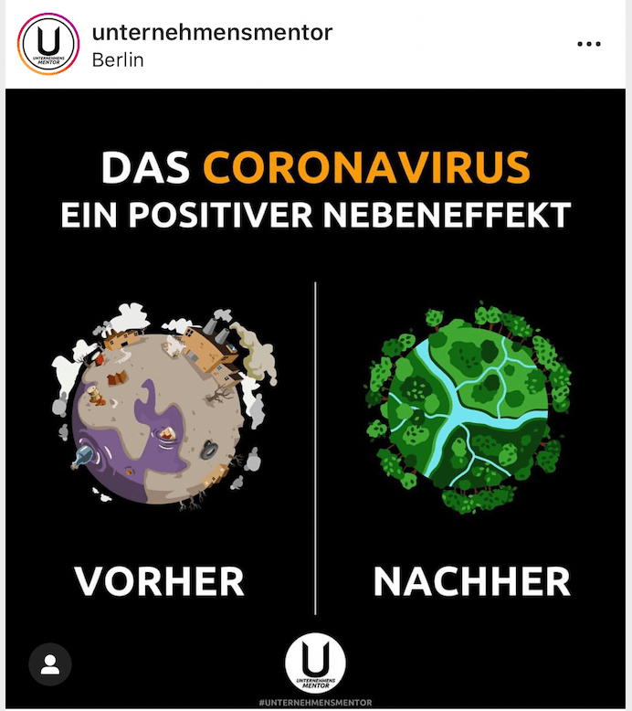 Es gibt auch einen schönen Seiteneffekt. Unsere schöne Erde 🌍 erholt sich derzeit! Vielleicht kann unsere wunderschöne Flora und Fauna sich komplett erholen und das Aussterben von verschiedenen Arten verhindern. Es gibt Bilder, die mich beeindruckt haben und die Hoffnung noch weiter unterstützen. Die Bilder habe ich in Berichten gefunden. Die Quelle ist angemerkt. Erstaunlich ist die Satellitenaufnahmen über China. Die Änderung ist enorm und ein guter Schritt in die richtige Richtung. We only have one planet 🌍!