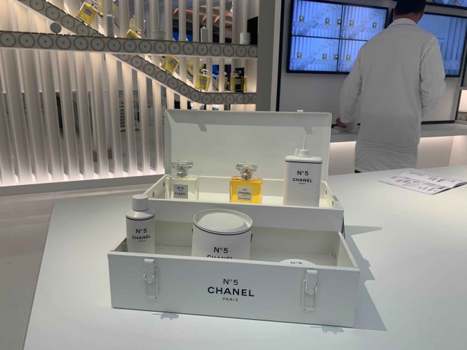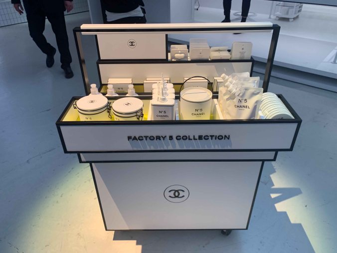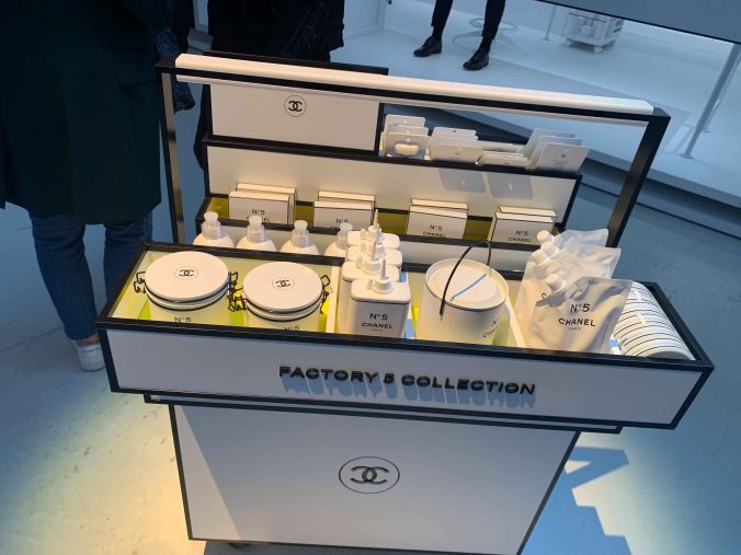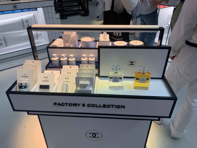 Il y avait un événement à Paris à l’occasion de l’anniversaire du parfum Chanel No.5. Au Marais il y avait une sorte de Pop-Up Store pour l’anniversaire de ce parfum iconique – Chanel Factory 5. L’intérieur ressemblait à un genre d’usine. Les employés n’était pas habillés comme d’habitude dans les magasins Chanel; ils étaient dans les tenues de personnes qui travaillent dans une usine. En arrivant on devait cliquer sur un bouton d’où sortait un numéro. Normalement il s’agissait plutôt des années, où quelque chose de grand et marquant s’ètait passé avec l’iconique Chanel No.5. Avec un petit peu de chance on tirait le 5 et on recevait une surprise – malheureusement je n’avais pas tiré No.5. 😉