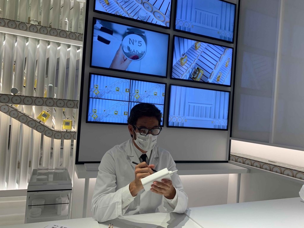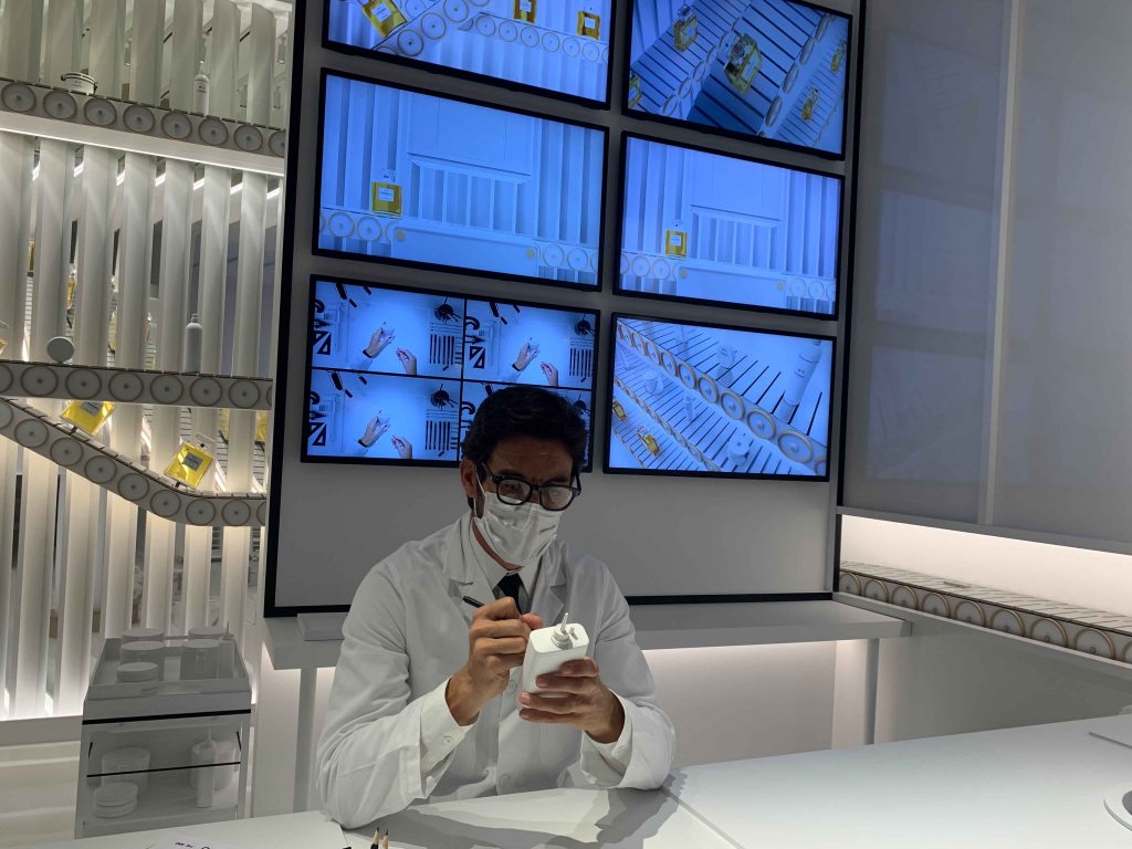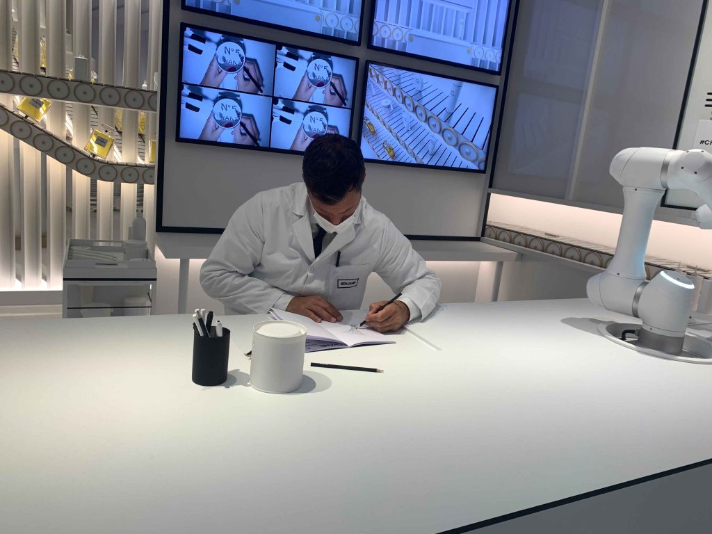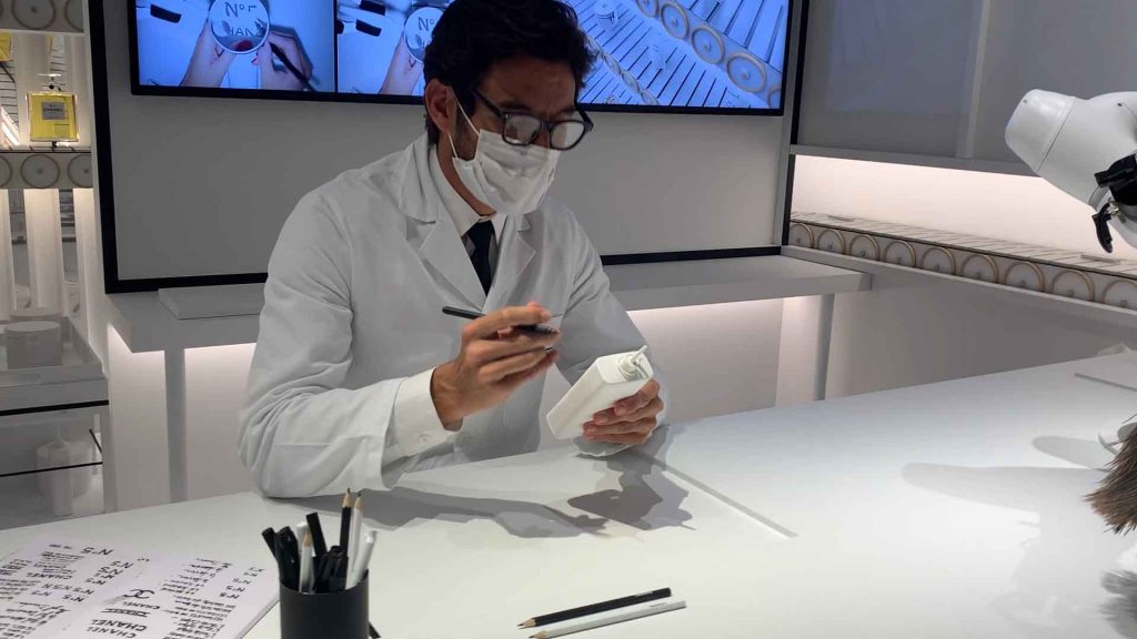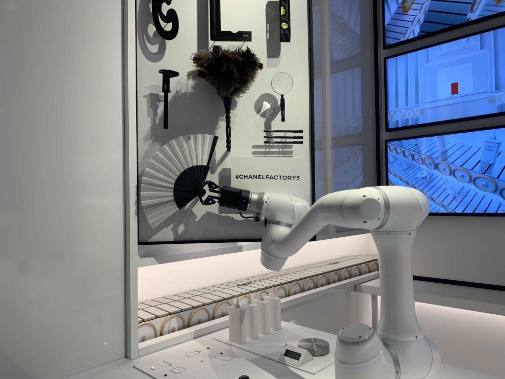 Dans la Chanel Factory 5 il y avait des « experts », qui faisaient un dernier check – des petits robots équipés d’outils – une loupe 🔎pour voir encore un peu plus en détail, un plumeau 🧹 (ben il fallait nettoyer, même l’expert était nettoyé 😉😅), et un éventail au cas il ferait chaud.