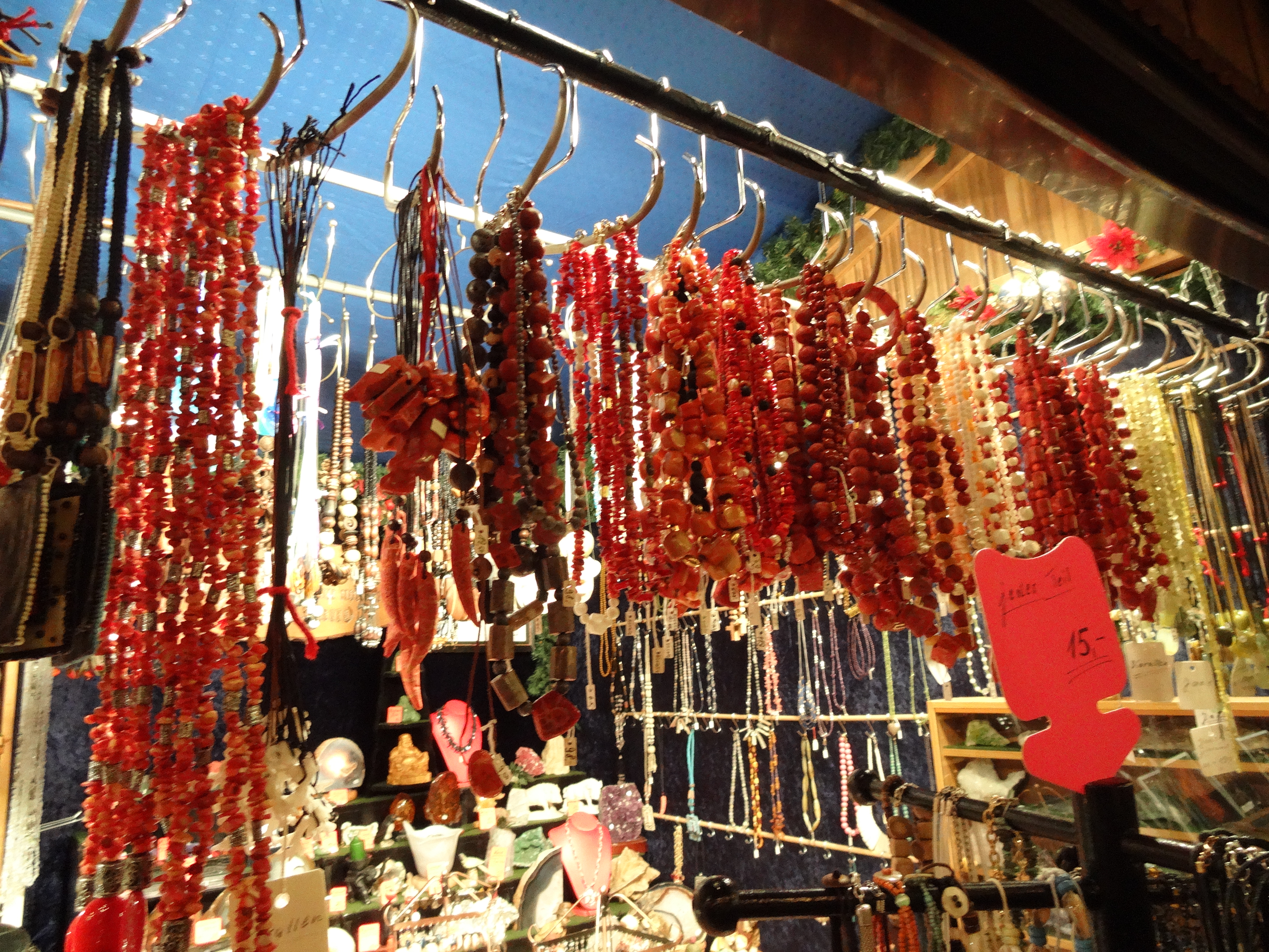 Und weil ich Schmuck liebe, fand ich auch den Schmuckstand direkt am Anfang des Weihnachtsmarkts sehr schön. Dort gab es Schmuck aus Thailand, aber auch von einer Geschäftsaufgabe. Der Herr war sehr freundlich und hat mir einiges erklärt.