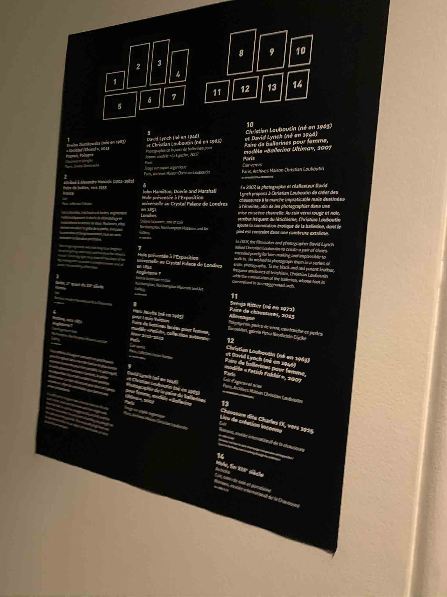 Concernant les chaussures il y’avait une exposition très intéressante consacrée aux chaussures et leurs histoires très diverses.