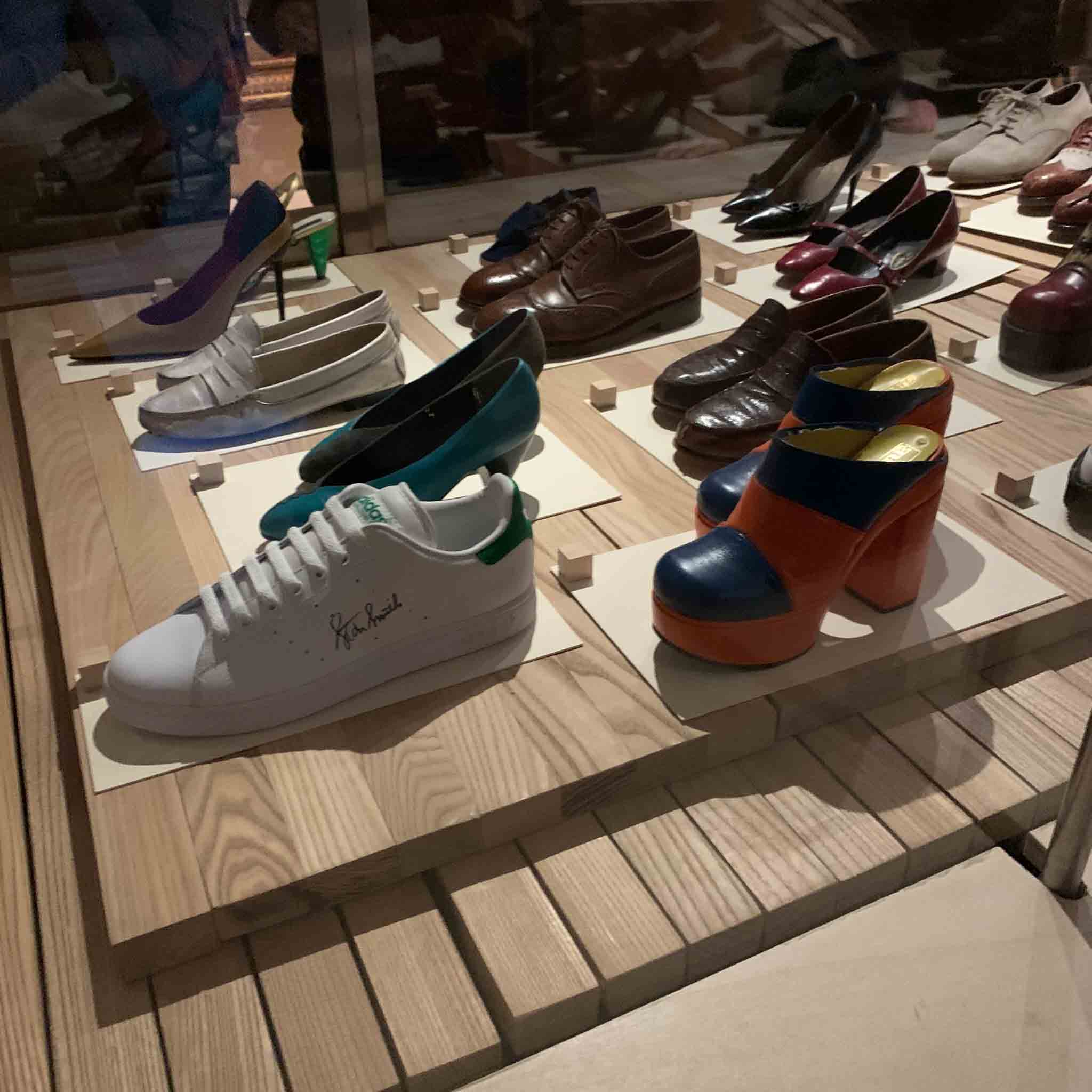 Plus loin se trouvait une collection de différentes chaussures avec des bottes 👢, des bottines 🥾, des escarpins, des High-Heels 👠 énormément hauts, des patins très anciens, des ballerines 🥿, des sneakers 👟 (avec entre autres les sneakers très connus de Stan Smith), des sandales 👡 et les très célèbres High-Heels Christian Louboutin (marque connue pour ses semelles rouges et aussi les talons très hauts) et encore beaucoup d’autres chaussures. Le monde des chaussures est simplement très différent, très unique et – d’une certaine façon – très joli.