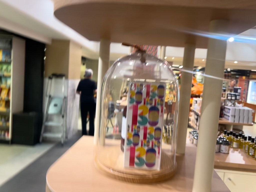Et enfin une dernière partie que j’ai trouvée très intéressante. Pourtant, au début, j’avais pensé que c’était simplement une très belle nature morte qui montre des scènes de la vie quotidienne comme un rouge à lèvres 💄, un vernis à ongles 💅, des lunettes de soleil 🕶️, une cigarette 🚬 et une bague 💍. J’ai découvert cette structure lorsqu’un guide me l’a montrée. Au premier coup d’oeil, on ne le remarque pas vraiment et on pense juste que c’est joli, mais quand on se retourne, on voit que c’est en trois dimensions.