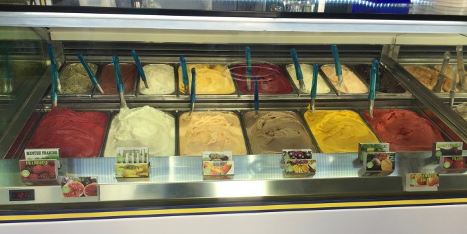 Und für diejenigen, die doch lieber das klassische Eis bevorzugen würden hier bestimmt auch nicht enttäuscht werden. Eine schöne Auswahl an Sorbets – die doch wahrlich eine Erfrischung an warmen Tagen sind – mit den verschiedensten Sorten. Die Sorbets gibt es in sehr interessanten Geschmacksrichtungen wie Minze, Blutorange, Wassermelone und sogar Schokoladensorbet. 😉 ❤
