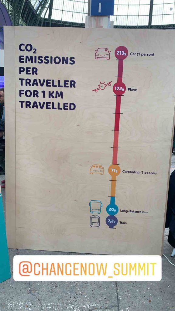 Au lieu de prendre la voiture ou l’avion, il y énormément d’alternatives comme les transports en commun, marchez ou prenez le train ou le vélo.