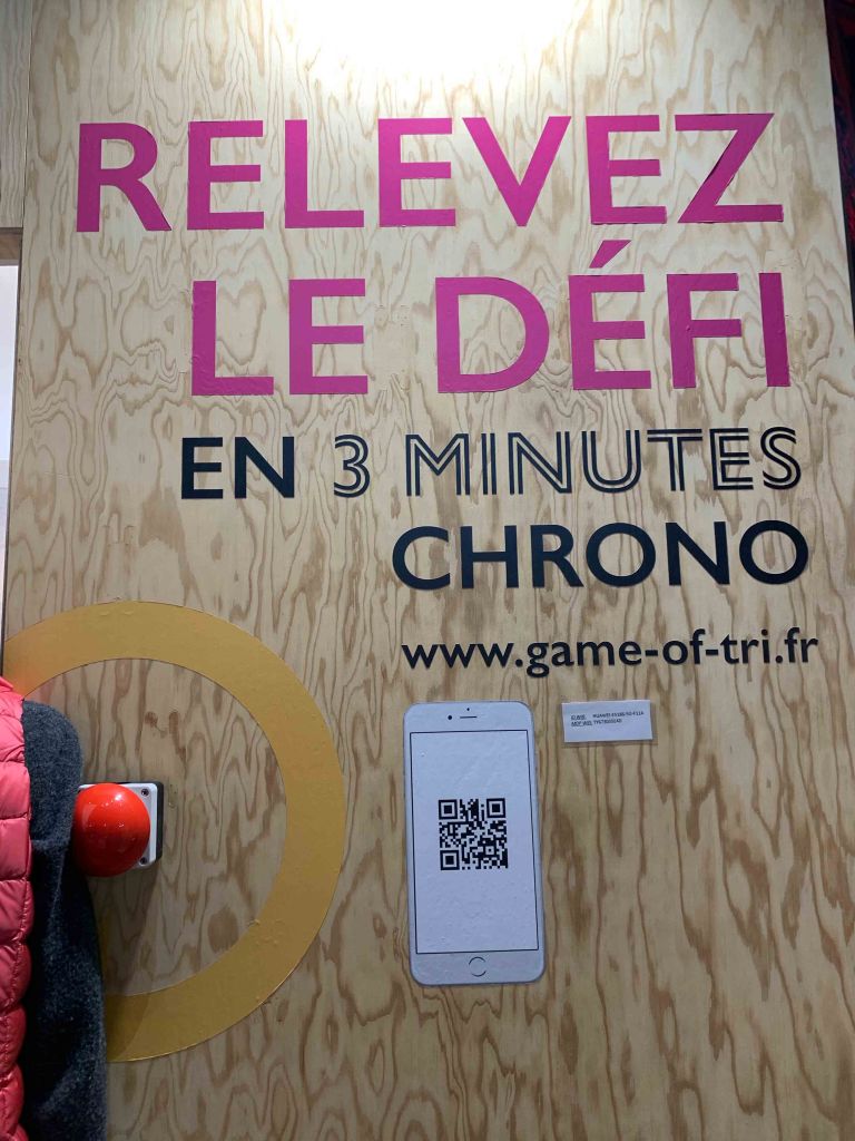Un autre sujet pendant l’exposition était aussi le triage correct des déchets. Le stand CITEO donnait une sorte de overview du tri. Il y’avait aussi le jeu « Game of Tri ». On rentre dans une pièce où différents produits étaient placés. Il faux les trouver, scanner et après choisir dans quelle poubelle ça devrait aller. L’idée est bonne. Apprendre avec un jeu à faire le tirage. A côté des jeux il y’avait aussi une application où se trouvaient des informations pour le bon tri!
