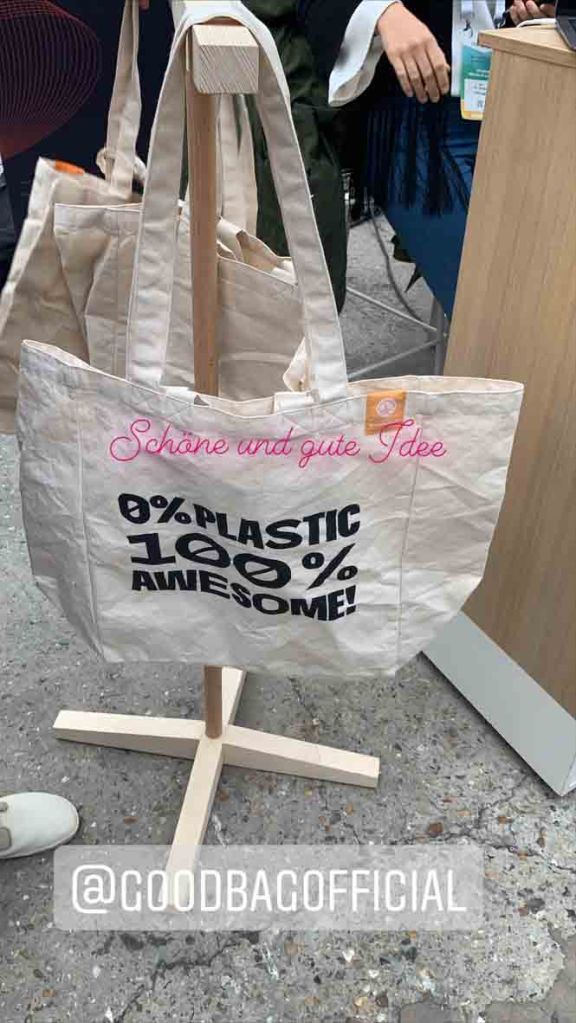Ein weiterer interessanter Stand war Goodbag. Bei dem Kauf einer Tasche hilft man dabei Bäume zu pflanzen 🌳 und minimiert auch die Verwendung von Plastik. Außerdem waren die Taschen mit ihren verschiedenen Designs sehr hübsch und interessant. Ich werde mir die Tasche Donald Trump bestellen, der sagt: “This is a plastic bag! It’s true!”