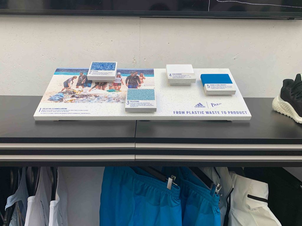 Adidas montre aussi ses idées 💡 pour la protection de l’environnement avec les pièces adidas x parley. Les chaussures 👟 sont crées avec au moins 75% de plastique recyclé. Aussi la fabrication se passe dans une performance économique avec l’utilisation réduite d’eau et d’énergie. C’est bien connu que 💡 si on ne fait pas attention ⚠️ en 2050 il y’aura plus de plastique que poissons 🐠 dans l’océan!